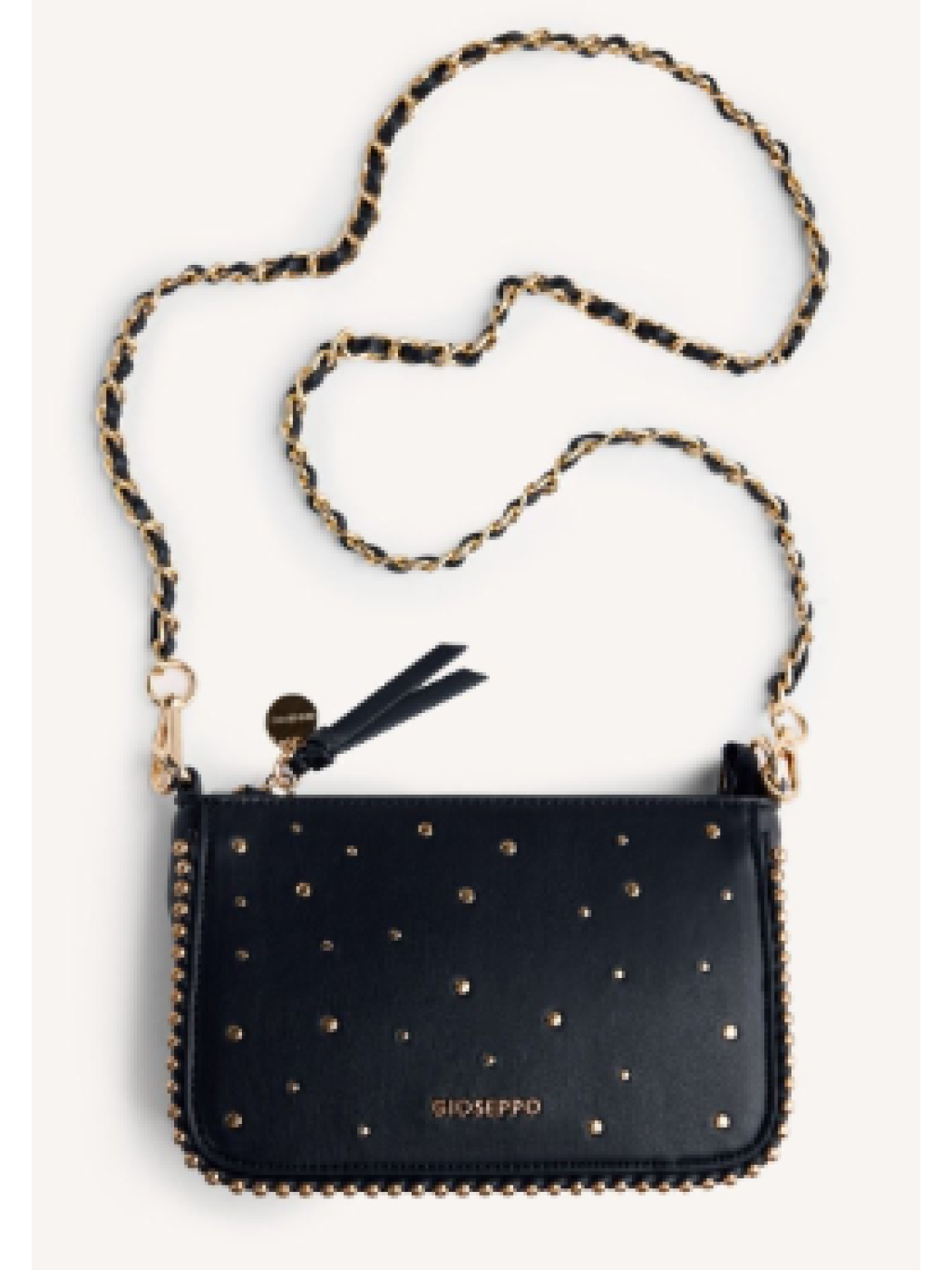 \r\n\r\n\r\n\r\nBolso tipo bandolera suave al tacto con adrono de tachas. Forro interior y cierre con cremallera. Asa larga tipo cadena.Medidas (Largo*Ancho*Alto): 20,5*5,5*13,5 cm.