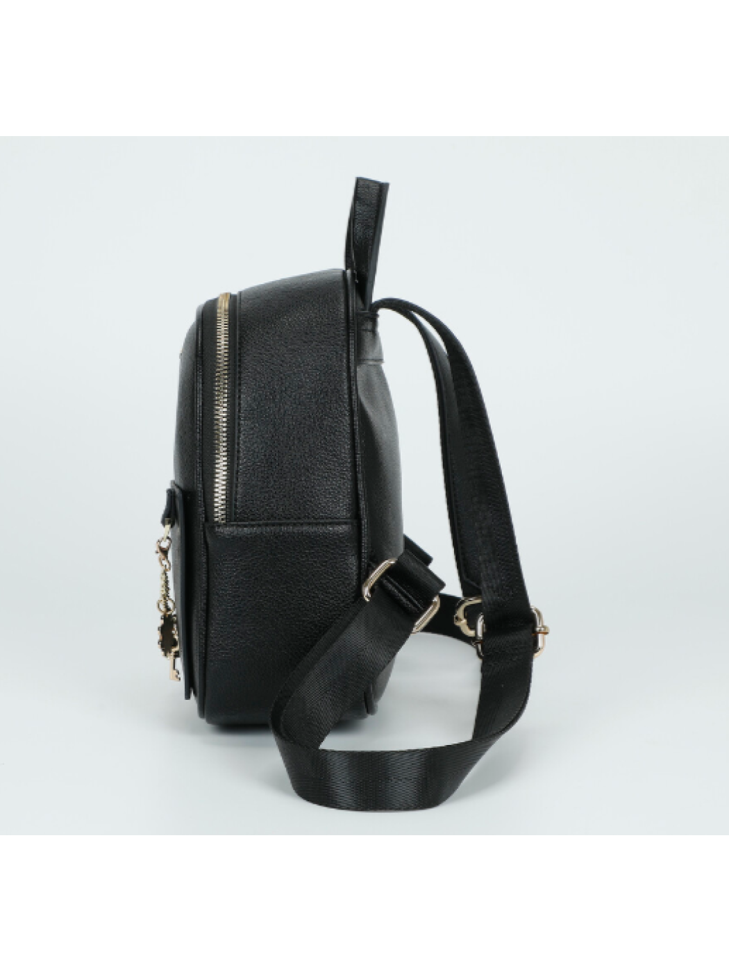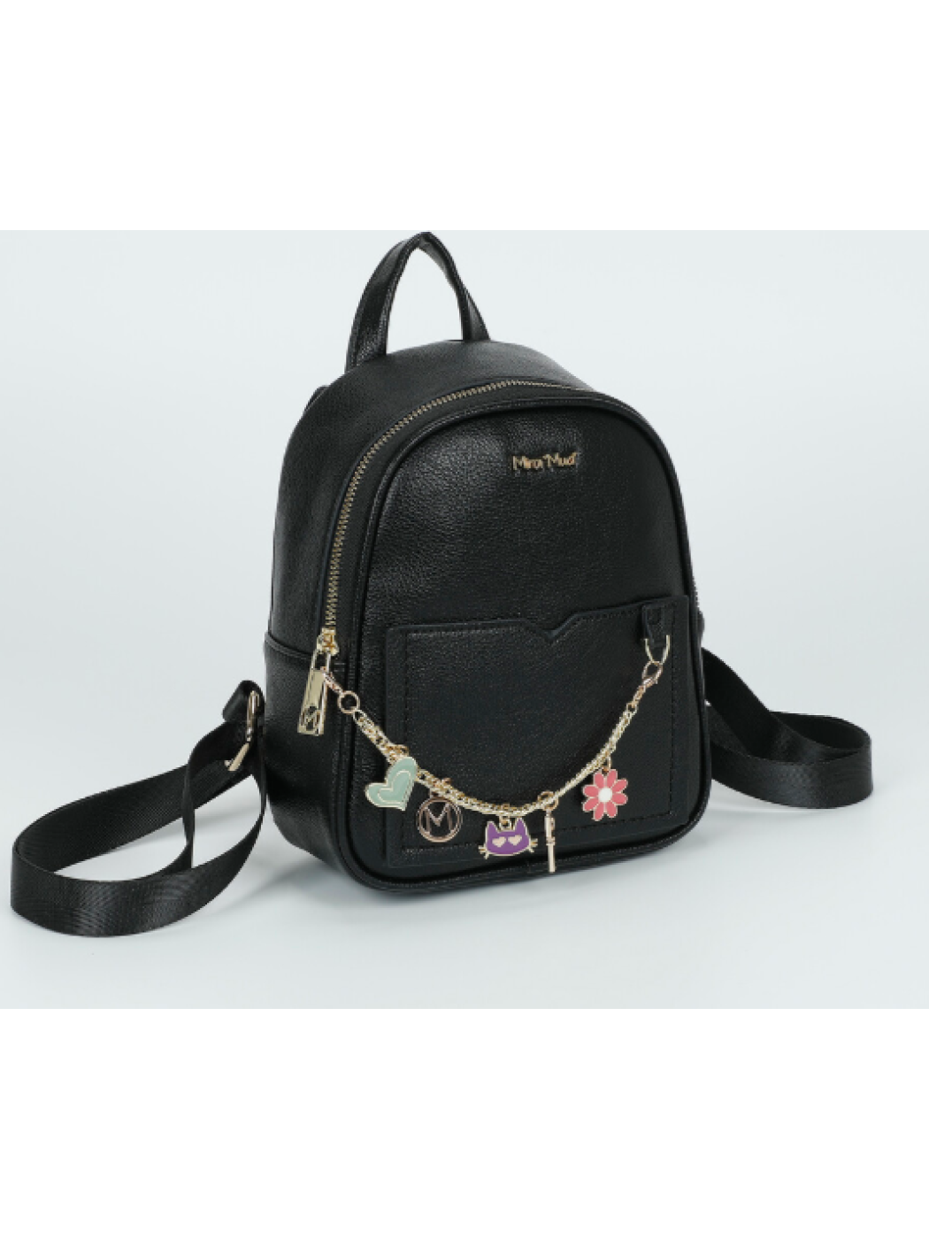 Mochila pequeña de Mimi Mua con cadena con abalorios decorativos, cierre con cremallera, bolsillo exterior.