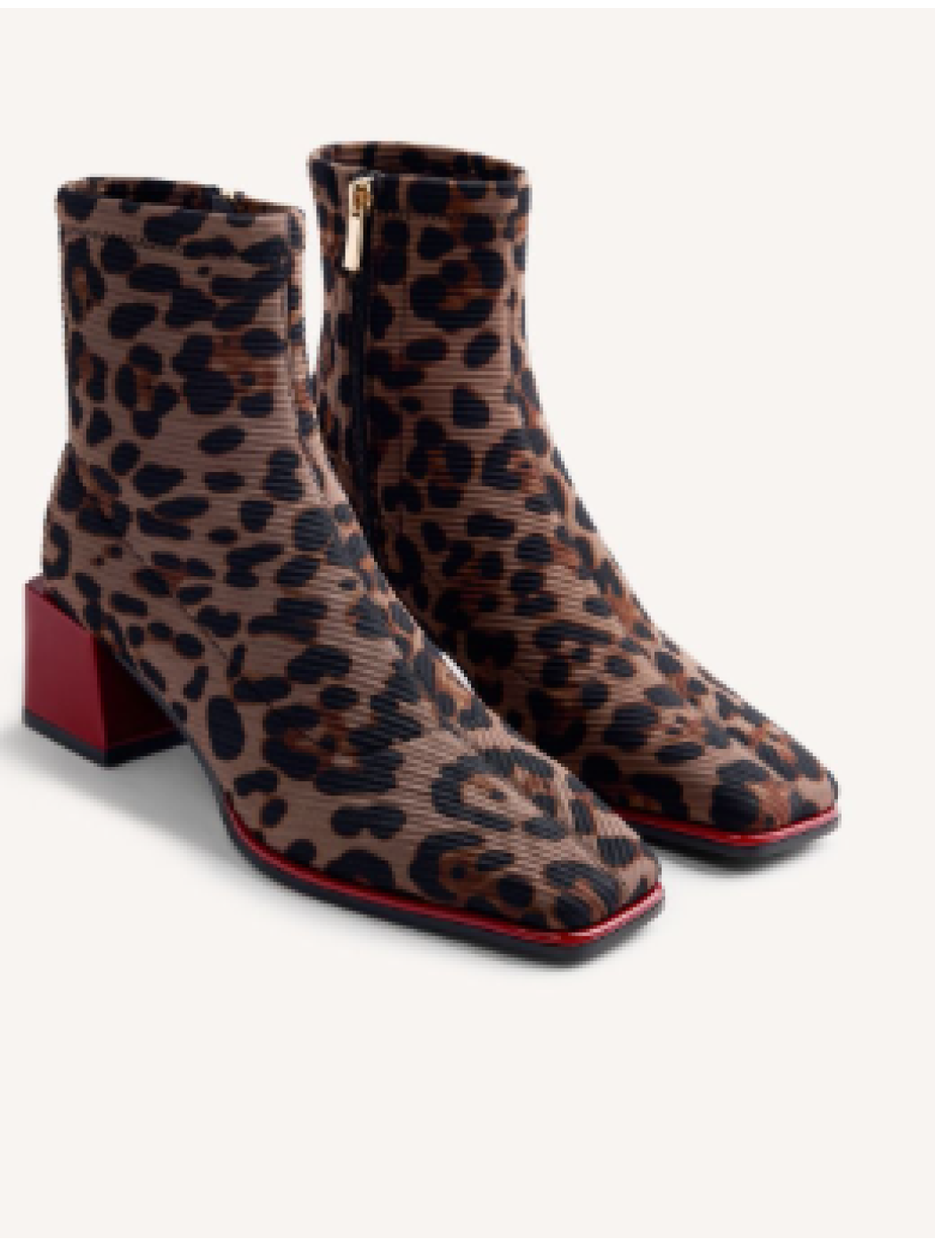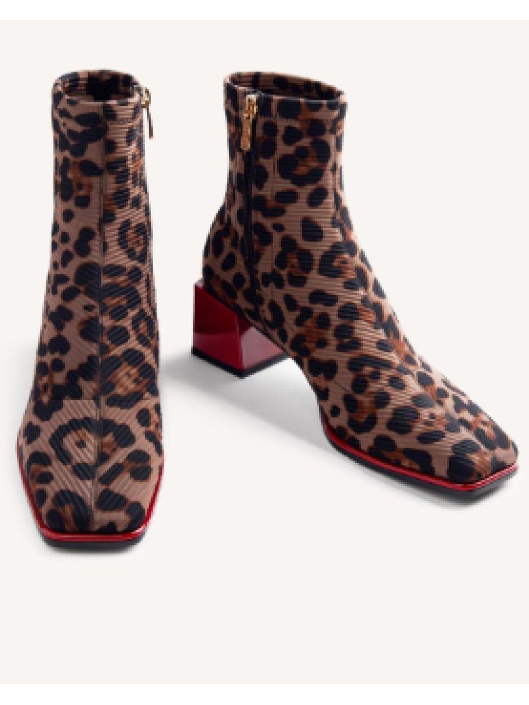 Botines con estampado animal y caña tipo calcetín. Tacón acharolado tipo bloque y cerco en contraste. Cuentan con plantilla acolchada y cremallera en el lateral interno de la caña. Punta cuadrada. Altura tacón: 5 cm. Este modelo destaca por su suavidad y elasticidad. Seguimos la guía estándar de anchos de caña, ajustando la medida según la talla.